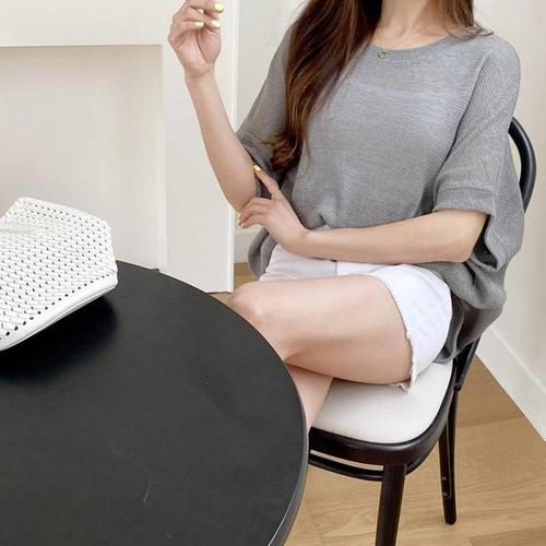 [다잇템]여성 베이직 반소매 기모노핏 민무늬 니트 (41117779A)
