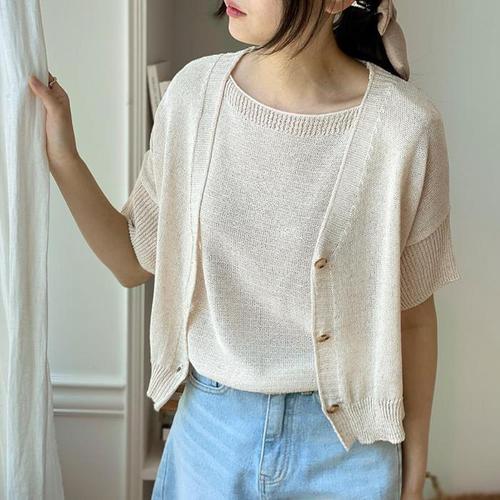 [브이와이][VY] 여자 V넥 기모노핏 탱크 스웨터 숏가디건 꽈배기 가디건_15217704_588847