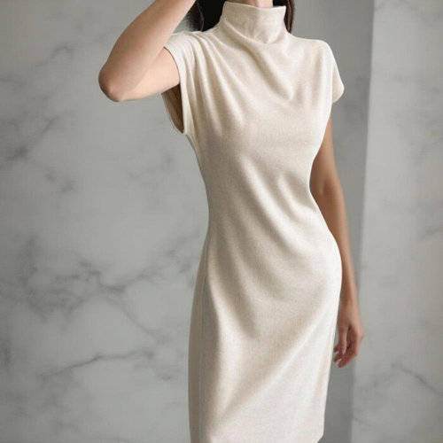 [옷자락]여성 기모 하이넥 골지 반팔 슬림핏 등원룩 롱드레스