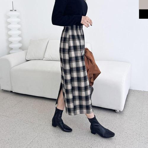 블레오 여자 기모 체크 H라인 뒤트임 롱 스커트 DM2512161394
