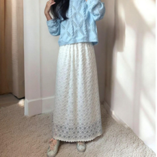 스타일원 여성 밴딩 펀칭 기모 안감 레이스 롱 스커트 치마