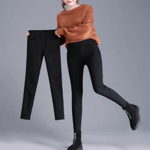 앵클 포인트 여성 양모 면스판 스키니 밴딩바지 기모 겨울 팬츠