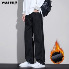 wassup 남자 청바지 동계 와이드 기모청바지 빅 사이즈 밴딩 일자 슬랙스