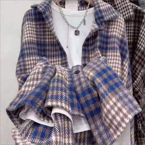 [셀러허브_여성트랜드패션]오버핏 간절기 체크 모직 셔츠 루즈핏 기모 겨울 남방