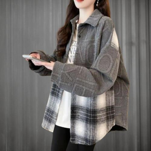 [신상오픈런]여성 오버사이즈 기모 체크 셔츠 데일리 패션