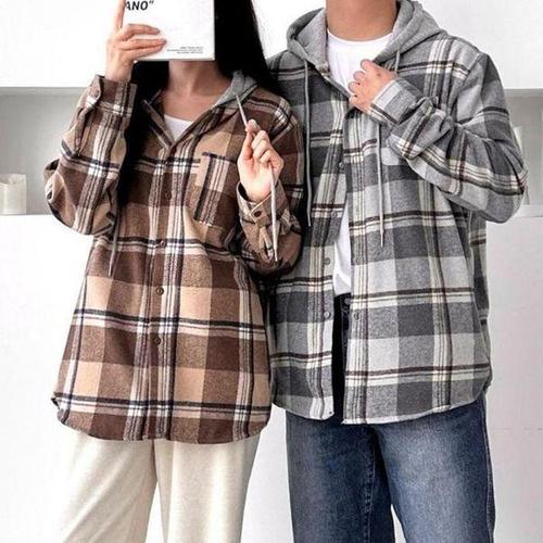 [셀러허브_여성트랜드패션]남녀공용 데일리 셔츠 커플 남방 부드러운 겨울 심플 체크 기모후드