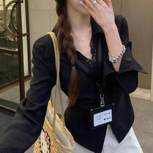 [셀러허브_여성트랜드패션]여성 기모 긴팔 레이스 블라우스 가을겨울용