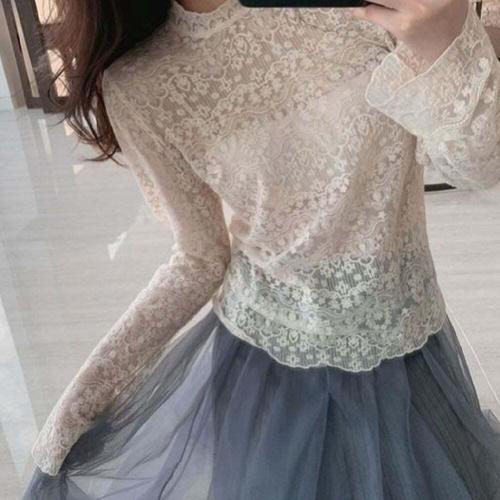 [셀럽하우스]여성 CKVZ9479 레이스 하이넥 이너 블라우스 기모