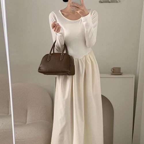 [다잇템]여자 슬림핏 잔주름 기모긴팔 롱원피스 (27376392A)