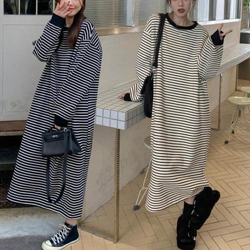 [신상오픈런]여성용 볼륨 기모 롱원피스 옆트임 박시핏 겨울용 드레스 (44091910)