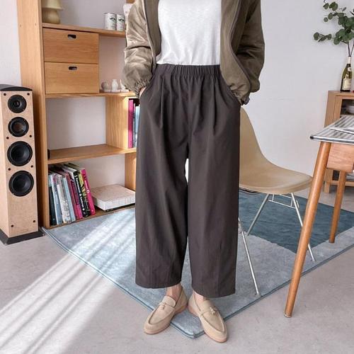 [신상오픈런]여성 핀턱 기모 바지 와이드핏 8부 뒷밴딩 치마바지