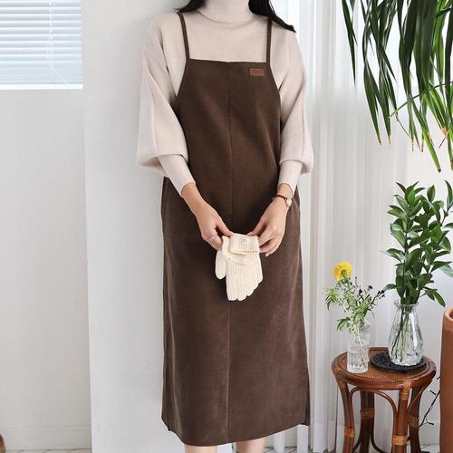 [미라클세븐]여성용 겨울 기모 코듀로이 롱원피스 빅사이즈 끈 디자인