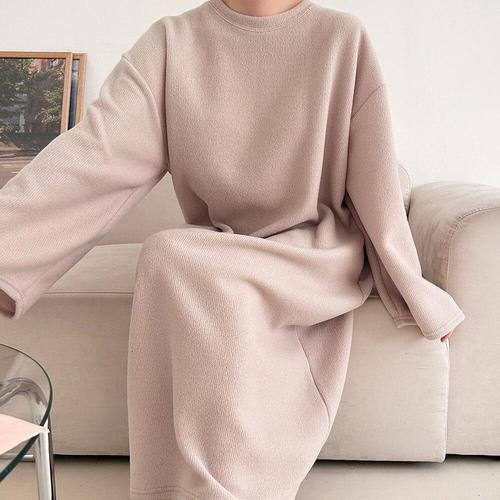 겨울원피스 OPS 홈웨어 2컬러 베이직 카라 롱원피스 여성 겨울 기모