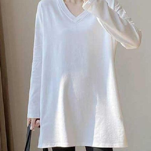 여성 브이넥 긴팔 기모 롱 티셔츠 ST0146 WFKPP0C