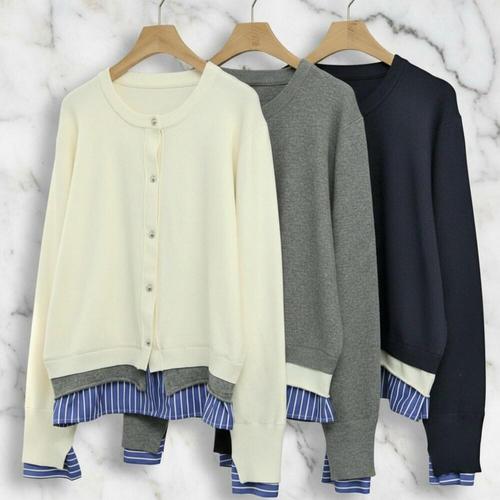 올리비아로렌 HC05 컬러블럭 포인트기본가디건 VOB BC4F7321