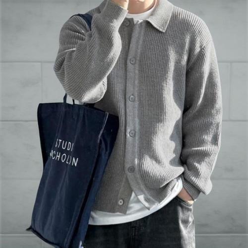 [옷자락]남성 기본 버튼 골지 카라넥 니트 가디건