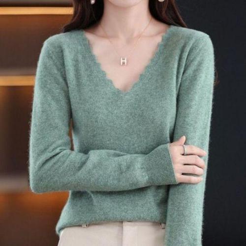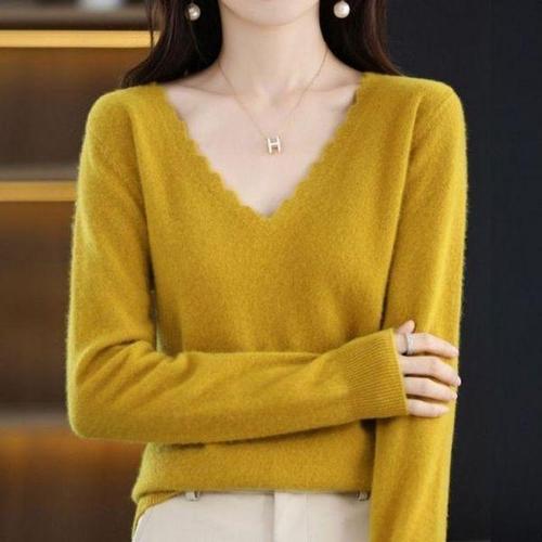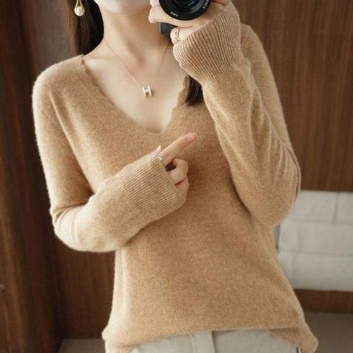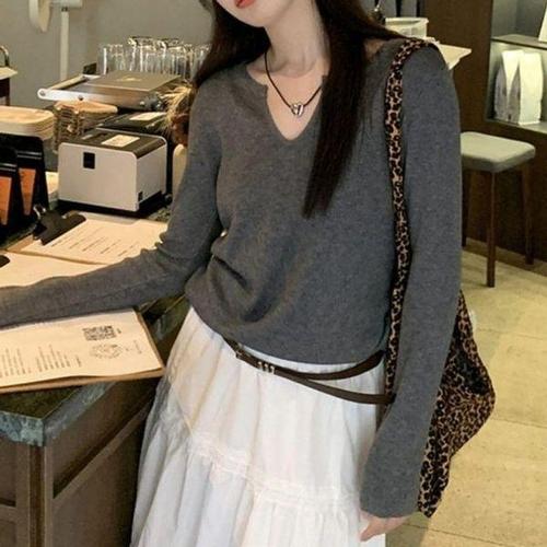 [기타브랜드]여성 브이넥 니트 봄가을 기본 스웨터 데일리 상의 티셔츠