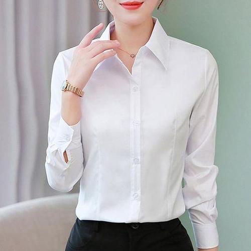 [셀러허브_여성트랜드패션]흰색 블라우스 긴남방 직장인 화이트 기본셔츠