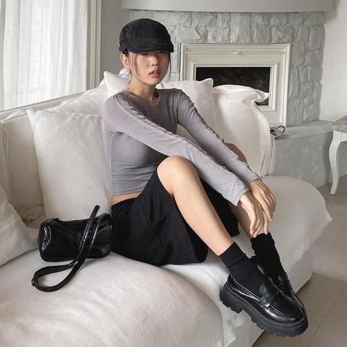 Y2K 긴팔 티셔츠 여성 봄 가을 크롭탑 캐주얼 슬림핏 풀오버 솔리드 O넥 티셔츠 스트릿웨어 여성 베이직 티
