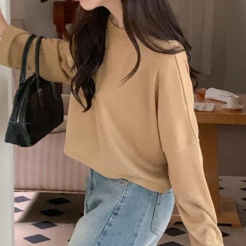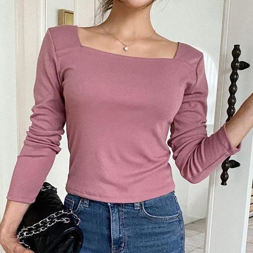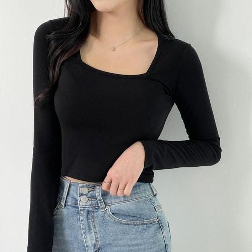 [다잇템]여자 스퀘어넥 긴팔티 세미크롭 민무늬 티셔츠 (18501177A)