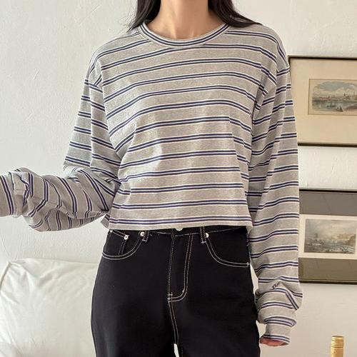 [르샵]라운드 스트라이프 배색 크롭 긴팔 티셔츠 (DO3LW014A)
