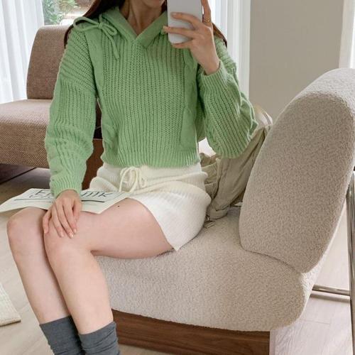 [다잇템]여자 크롭니트 후드긴팔 꽈배기니트 FW 티셔츠 (18500931A)