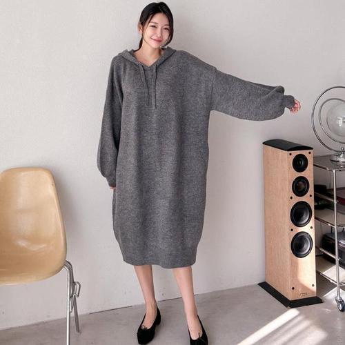 [다잇템]여자 등원룩 큰사이즈 후드긴팔 벌룬 롱원피스 (19702818A)