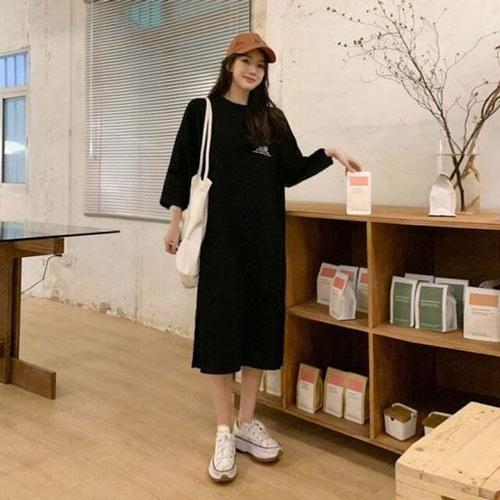 [셀럽하우스]원피스 VRAY0017 A라인 캐주얼 레터링 긴팔 필수템 롱원피스