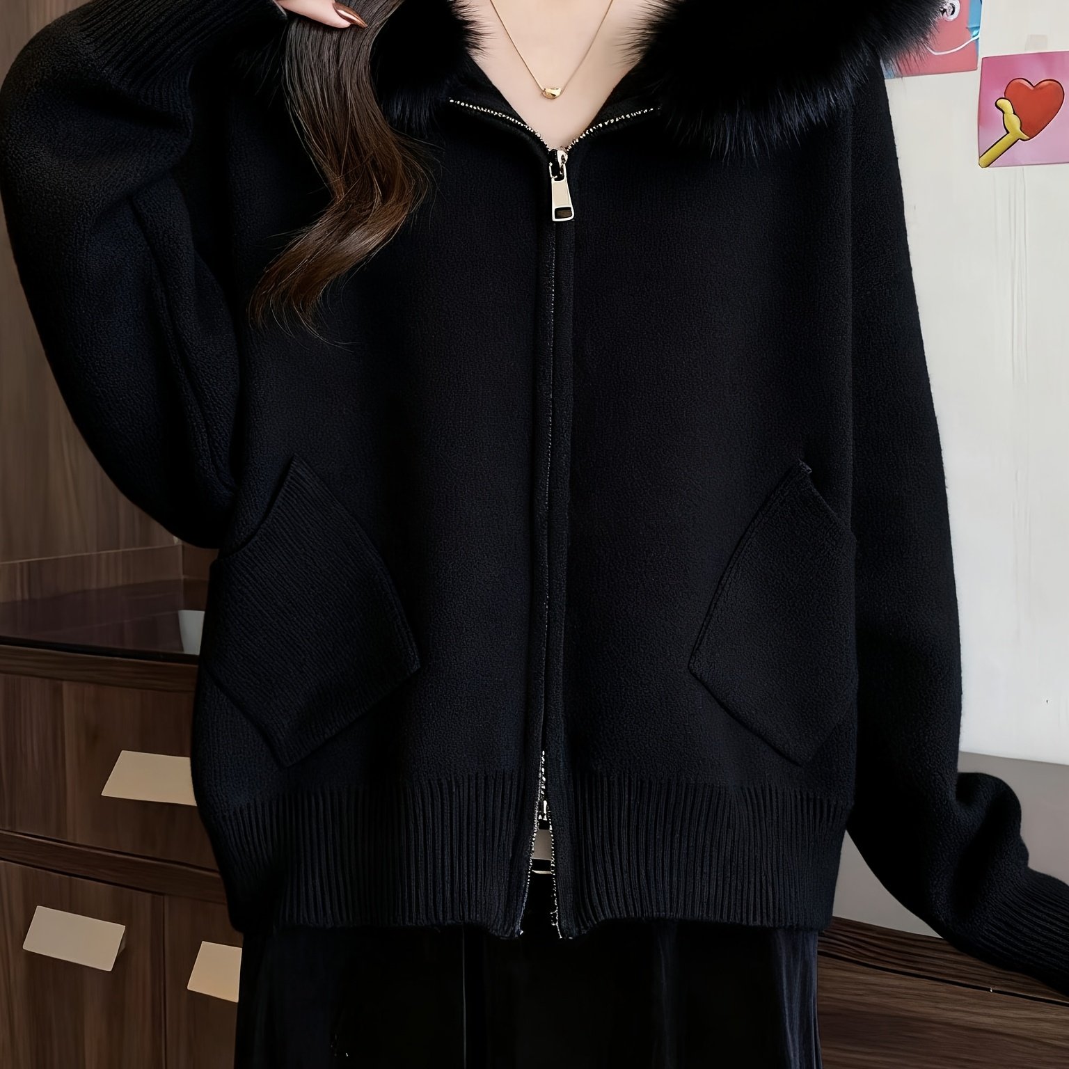 TEMU 우아한 여성 후드 스웨터 코트, 가을 겨울 패션, 젊고 스타일리시한 루즈핏 더블 지퍼 가디건|블라우스|가디건|패션