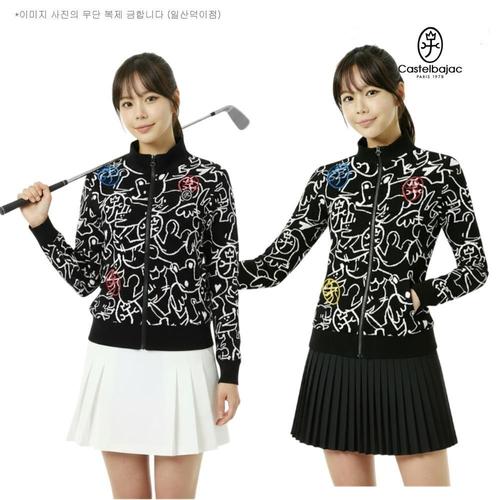 까스텔바작 여성 골프 자카드 집업 가디건 패턴 아트웍 로고 홑겹 니트 BGEF-SJ504