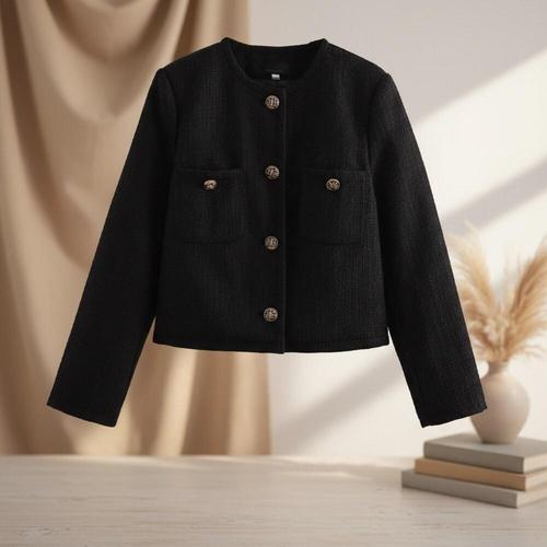 [옷자락]여성 캐주얼 하객용 노카라 숏 자켓