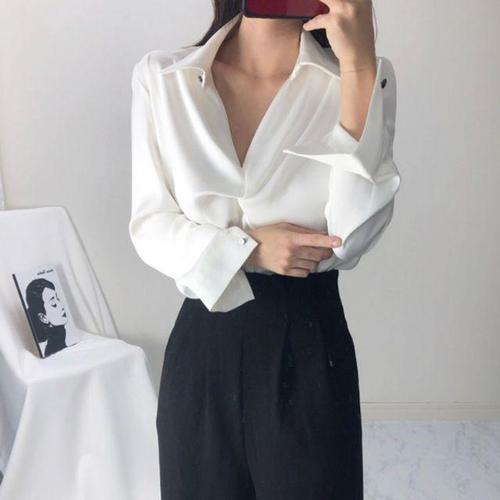 [셀럽하우스]꼬임디테일 XFII7137 카라 베이직 긴팔블라우스 블라우스 봄 직