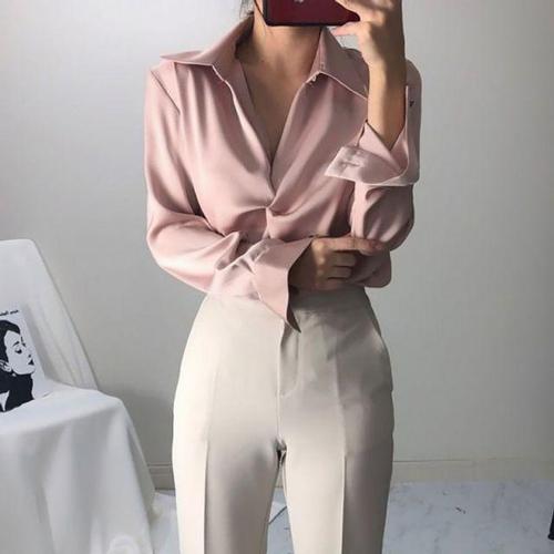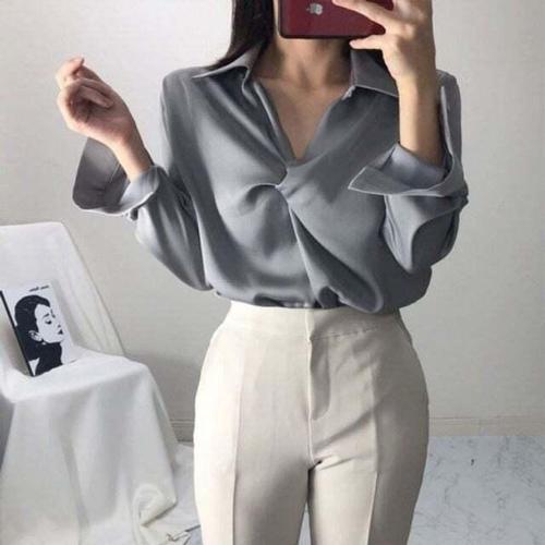 [셀럽하우스]오피스룩 YBAO1582 하객룩 출근룩 카라 꼬임 블라우스