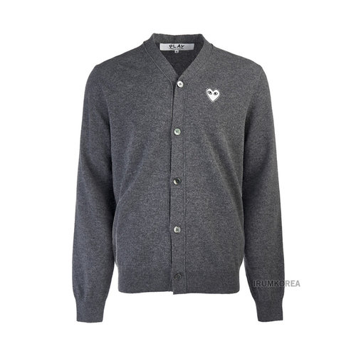 꼼데가르송 PLAY 플레이 V넥 하트 와펜 가디건 AXN008051WO Grey