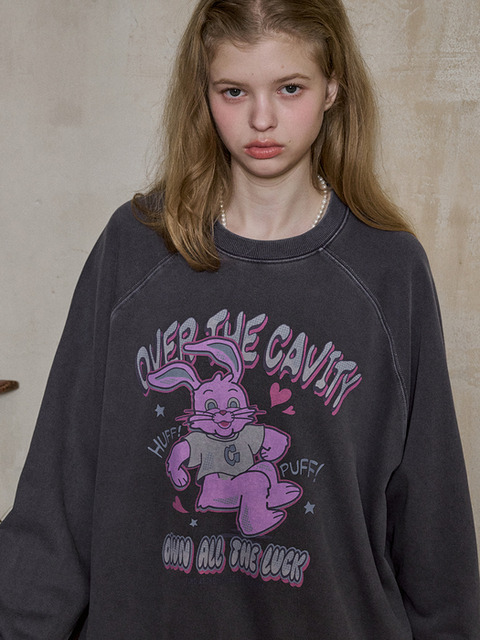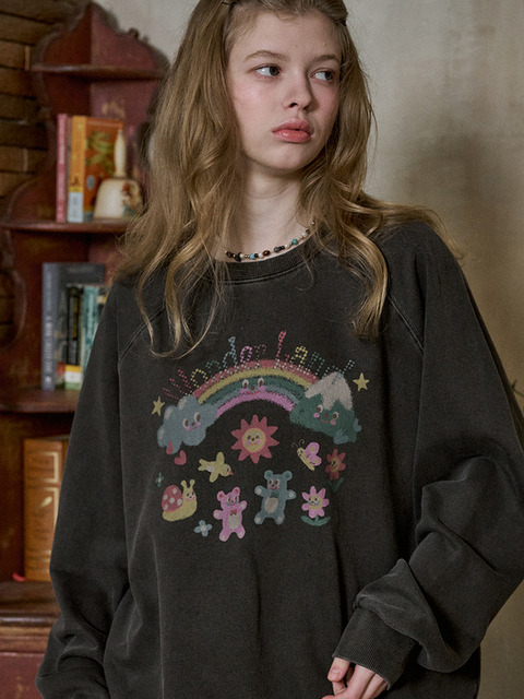 [꼼파뇨] 원더랜드 레글런 피그먼트 맨투맨 스모크블랙