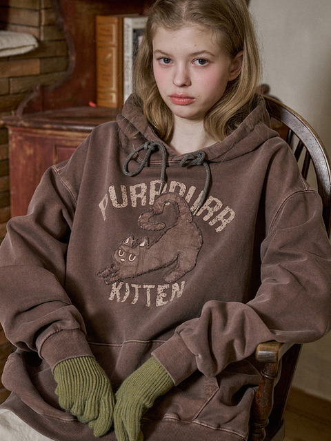 [꼼파뇨] KITTEN 패치 피그먼트 후드티 브라운