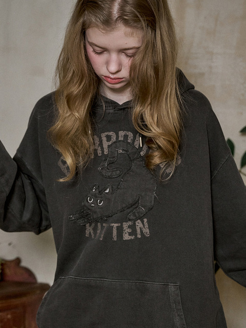 [꼼파뇨] KITTEN 패치 피그먼트 후드티 스모크블랙