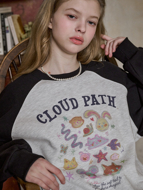 꼼파뇨 캣 스티치 레글런 피그먼트 맨투맨 고스트그레이 7979016
