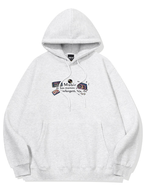 [꼼파뇨] 뮤직 모먼츠 자수 후드티 멜란지화이트