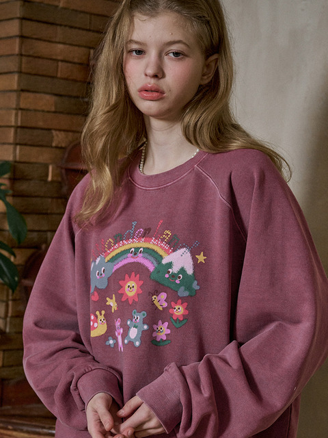 [꼼파뇨] 원더랜드 레글런 피그먼트 맨투맨 더스티핑크