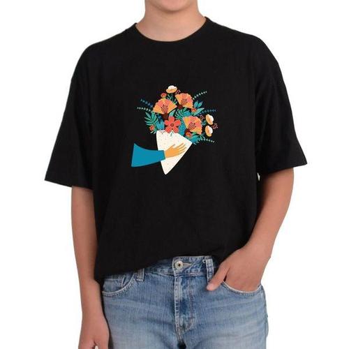 [에이치플러스몰]길단 반팔 USA핏 꽃다발 사랑고백 꽃 플라워 남자친구 애인그림 다양한색상 전사이즈