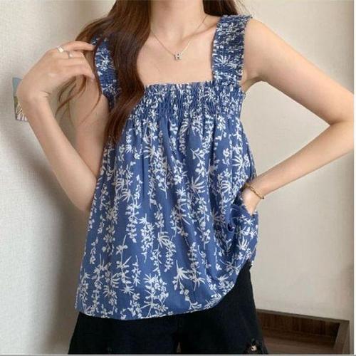 [다잇템]여성 꽃무늬 귀여운 프릴 탱크 블라우스