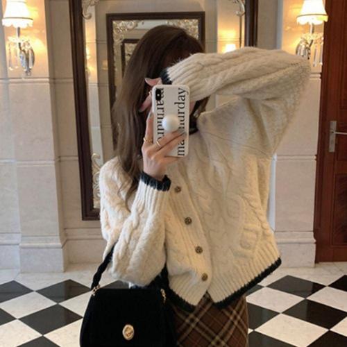 [신상오픈런]여성 가을 스타일 라운드 버튼 꽈배기 가디건