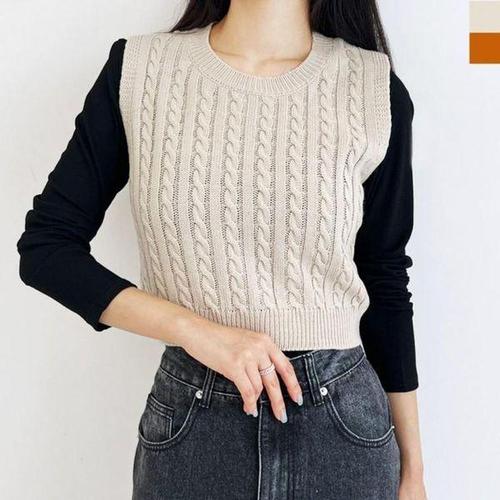 [에이치플러스몰]CAT 1049 여자 케이블 꽈배기 크롭니트조끼 여리여리 베스트 여성상의 데이트룩 조끼 여..