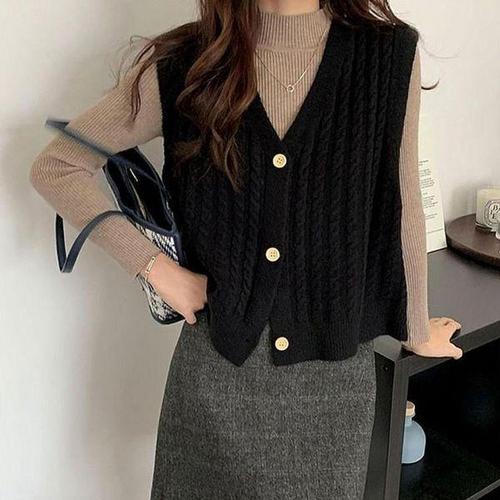 [에이치플러스몰]여성 꽈배기 패턴 브이넥 조끼 URK 귀여운 니트 여자 캐주얼 여성 티 베스트 조끼