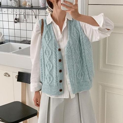여자 봄 스카시 꽈배기 버튼 뷔스티에 니트조끼