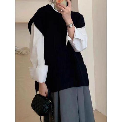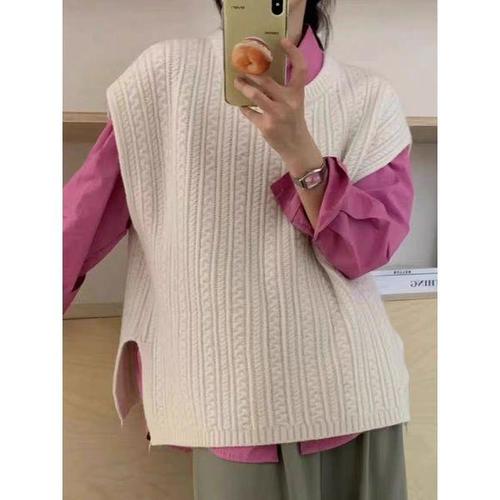 꽈배기 브이넥 레이어드 셔츠 여자 니트조끼 루즈핏 패턴