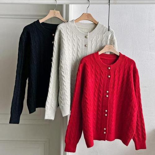 [오노마] ONM 여성 케이블 꽈배기 긴팔니트 가디건 라운드넥 여리핏
