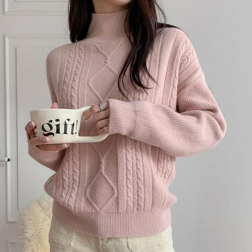 [옷은날개] 여자 하프넥 반목 폴라 터틀넥 꽈배기 포근한 니트
