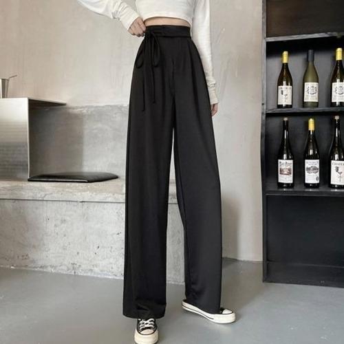 [셀러허브_여성트랜드패션]세로 패턴 핀턱와이드슬랙스 포인트 끈 팬츠
